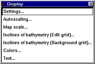 Items in the Display pulldown menu affect how and which objects are drawn on the drawing area.