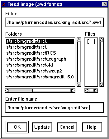 Click on the OK button to read the desired ACE/gredit object. On success the drawing area is refreshed, and the new object (if drawable) is drawn.